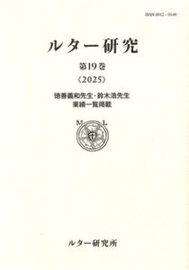ルーテル学院(ルーテル学院大学/日本ルーテル神学校)の附属機関であるルター研究所(江口再起所長)は今年で開設四〇周年を迎える。第一九巻はこの節目の年に刊行された研究紀要である。研究所は設立当初から大学・神学校を基盤にしたところに特色がある。「神学者ルター」と「教会人(信仰者)ルター」という二つのアプローチを併せもっていたことになる。